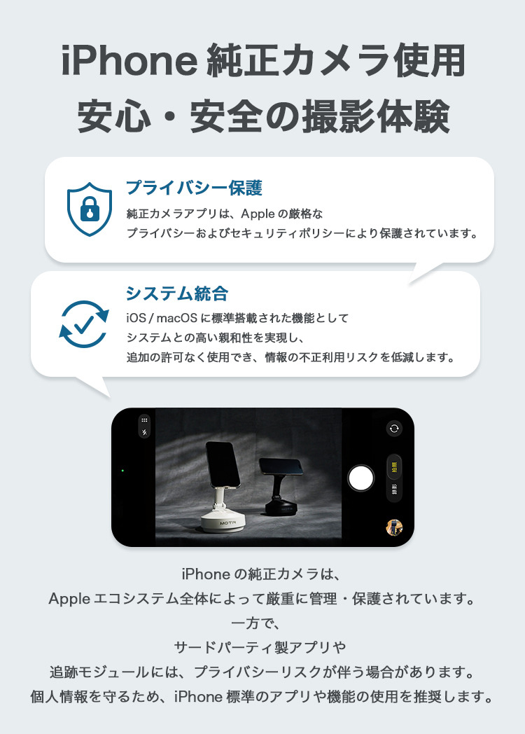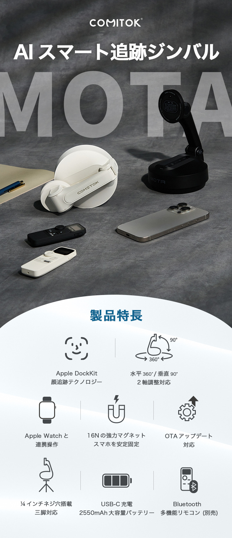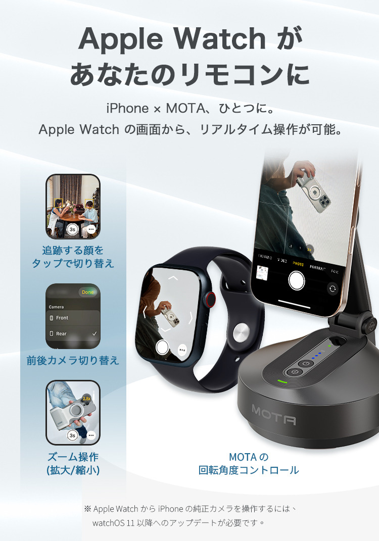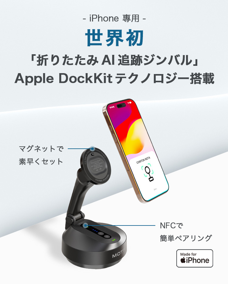 ・Apple エコシステムにシームレスに統合 : MagSafe 磁気吸着、Apple Watch によるリモート操作に対応。OTA アップデートで、iPhone とともに進化し、より多彩な体験を提供