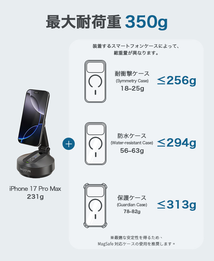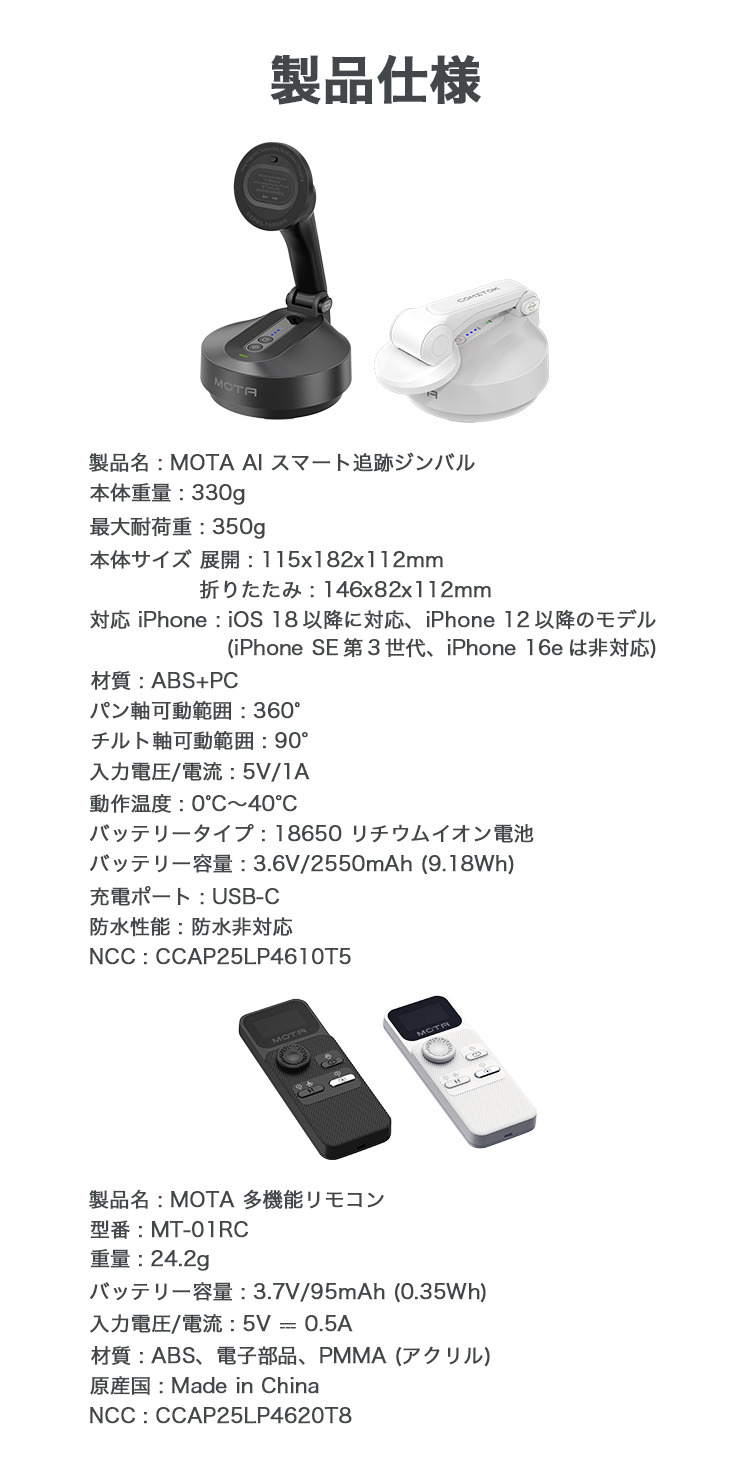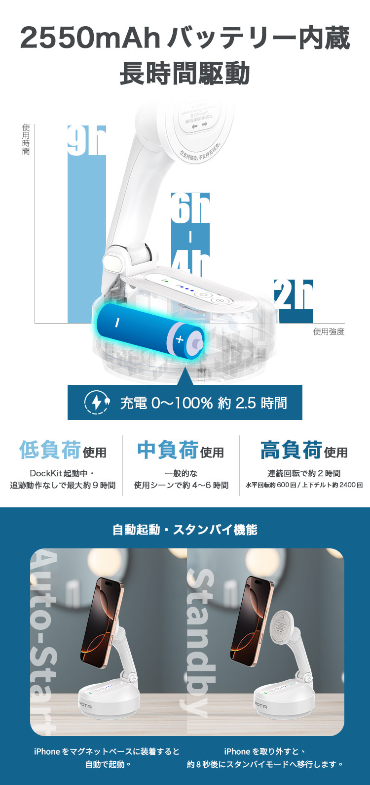 ・Apple エコシステムにシームレスに統合 : MagSafe 磁気吸着、Apple Watch によるリモート操作に対応。OTA アップデートで、iPhone とともに進化し、より多彩な体験を提供