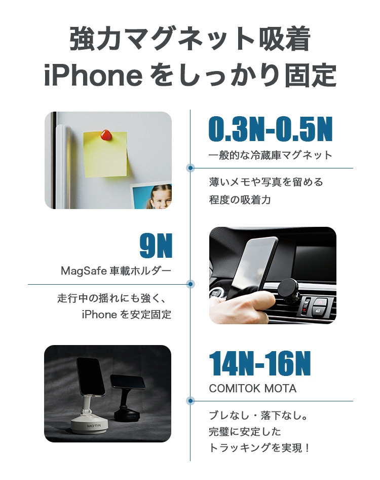 ・NFC で簡単・高速ペアリング。強力マグネットで iPhone をしっかり固定